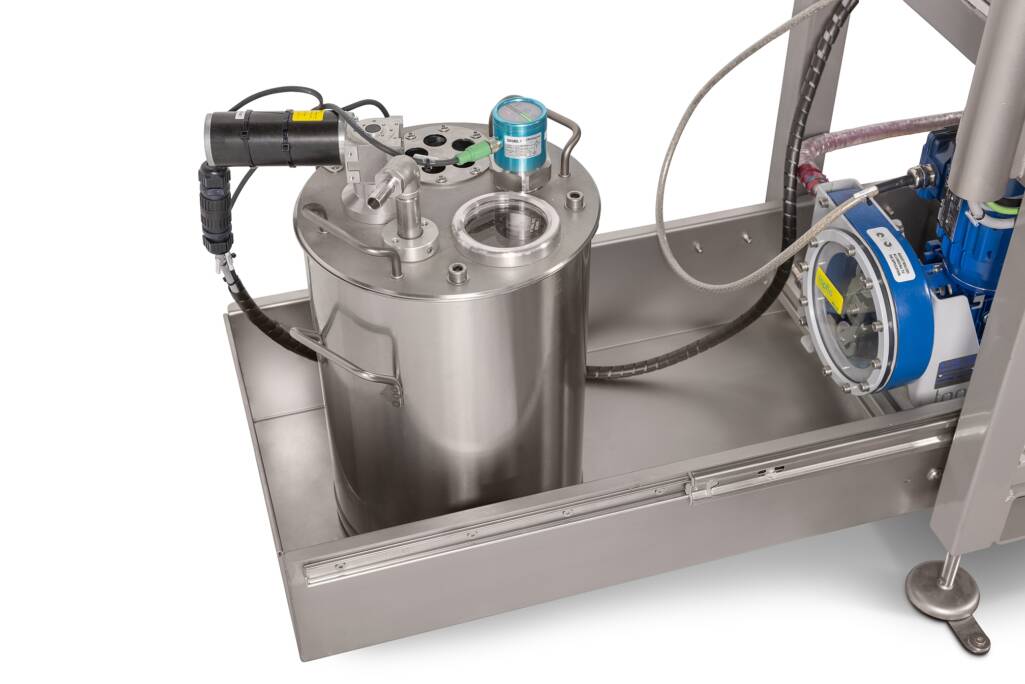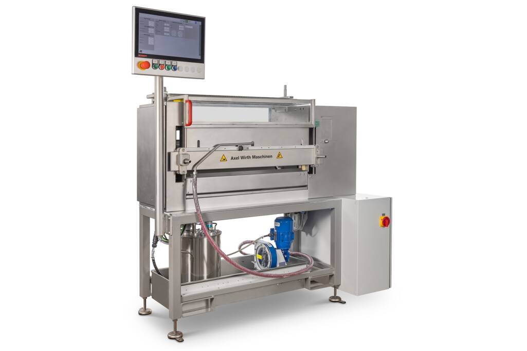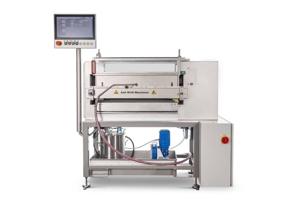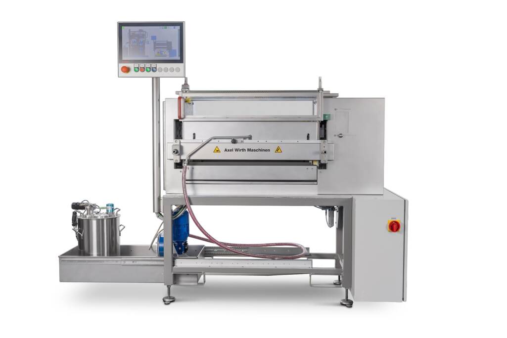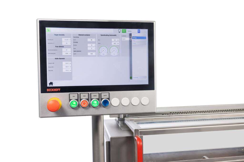 Die Walzenauftragsmaschine kommt als fertige Baugruppe inkl. Pumpe, Viskositätsmessung und automatischer Nachverdünnung.