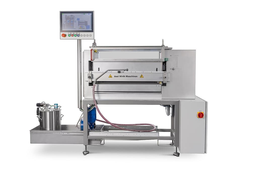 Die Walzenauftragsmaschine kommt als fertige Baugruppe inkl. Pumpe, Viskositätsmessung und automatischer Nachverdünnung.