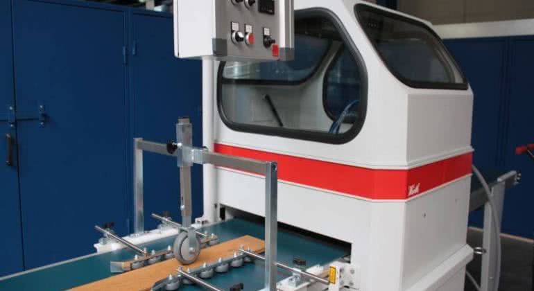 Selbst Fensterprofile aus Kunststoff lassen sich in sehr schwierigen Rottönen hervorragend lackieren. Hier hat Axel Wirth Maschinen GmbH in Kooperation mit einem namhaften Farbenhersteller ein sicheres System entwickelt. Und egal ob Technik für die Werkstückführung oder Vertreibereinheit - Axel Wirth Maschinen GmbH hat die Lösung, eben einfach "made in Germany".