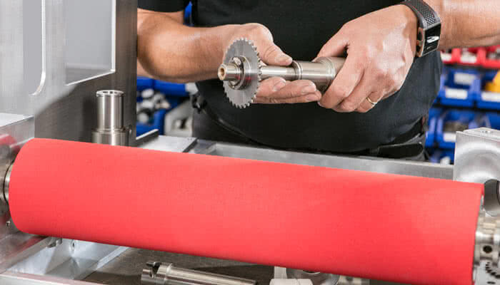 Dementsprechend bieten wir nun auch die Gummierung von Walzen an, welche die Kunden auch auf nicht "Wirth"-Anlagen laufen lassen können.