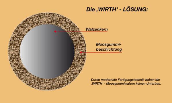 Höchste Qualität: Durch modernste Fertigungstechnik haben die „Wirth“ - Moosgummiwalzen keinen Unterbau.